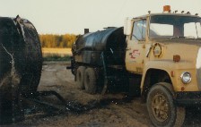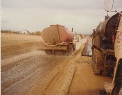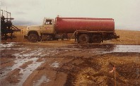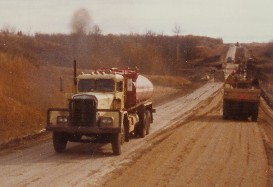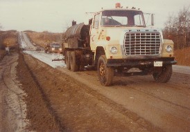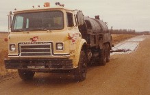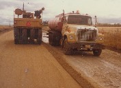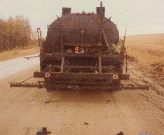 The oil truck is always the last equipment on the road. One night after the sign man had put up all his barracades and flare pots and