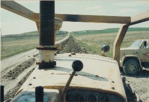 This job had a newer D-8 spreader cat. The spreader was pulled off and the Cat was used to pull a disk while ripping subgrade. It had a ripper from a 140G or 14G.
