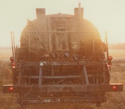 The oil truck is always the last equipment on the road. One night after the sign man had put up all his barracades and flare pots and